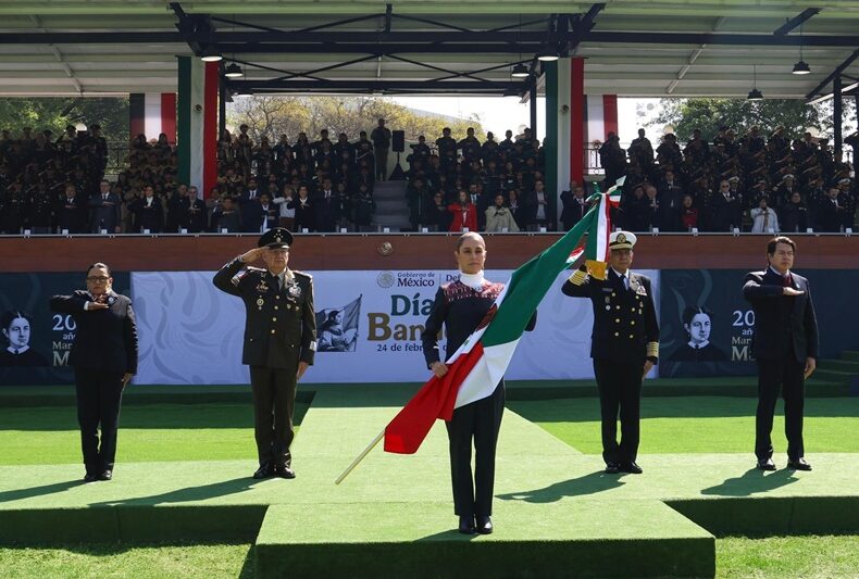Este 24 de febrero, en el Campo Marte de la Ciudad de México, la presidenta Claudia Sheinbaum Pardo encabezó la ceremonia conmemorativa del Día de la Bandera, una de las fechas cívicas más relevantes del calendario nacional. El acto reunió a representantes de los tres Poderes de la Unión, altos mandos de las Fuerzas Armadas y 920 escoltas provenientes de las 31 entidades del país.