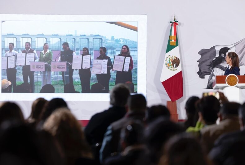 Sheinbaum aborda Ayotzinapa, derrame en Veracruz, reforma hídrica y revocación.