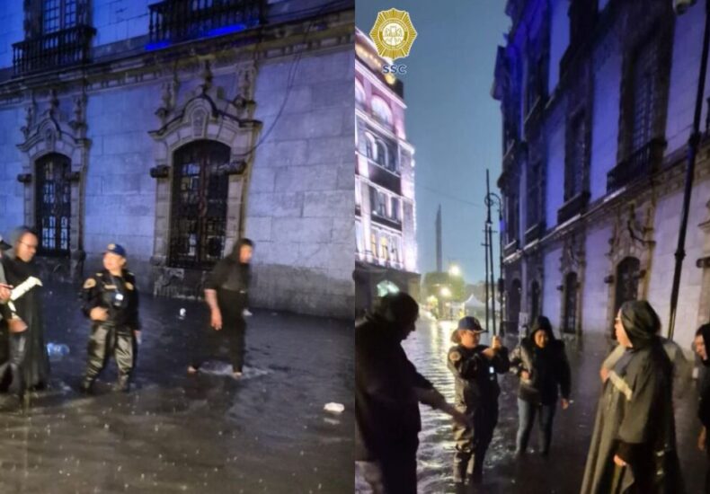 Bajo 30 centímetros de agua: así quedó el Zócalo tras el aguacero más fuerte del año