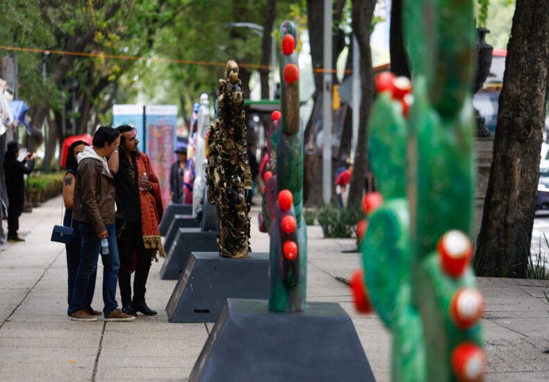La jefa de Gobierno de la Ciudad de México encabezó la inauguración de la exposición artística “Nopalera en el Corazón”, integrada por 200 piezas intervenidas por artistas y colectivos, como un homenaje a las raíces, la historia y la creatividad contemporánea de la capital.